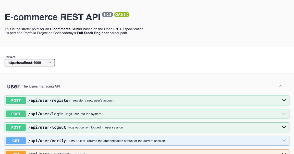 Backend kickstarter for online storesReady to go RESTful API, built with PostgreSQL and Node/Express stack. Easy to configure. OpenAPI 3.0 compliant.